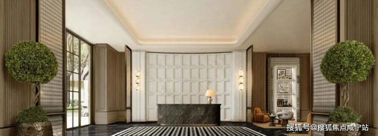 社区主入口更是兼具豪华酒店与海派元素设计风格,挑高约6米的入户大堂、水系景观与艺术家共创作品 交相辉映,奢华感和高级感拉满!