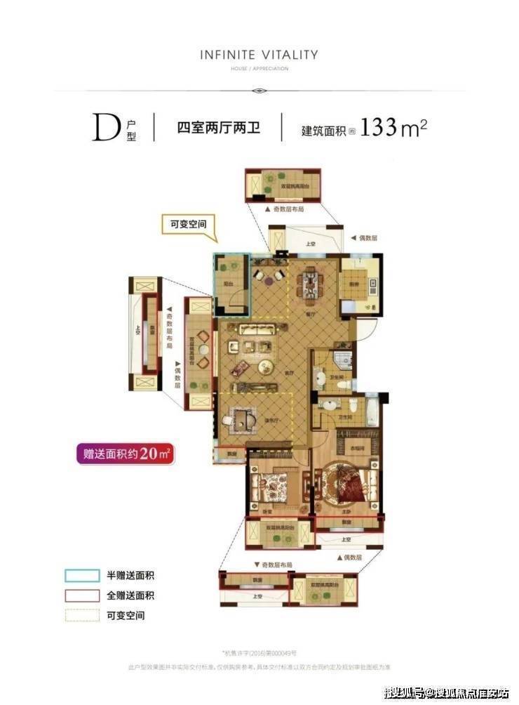 另外,133㎡的户型还有约20㎡的可变空间,这在如今得房率普遍下降的市场里,云锦城便显得格外珍贵了。