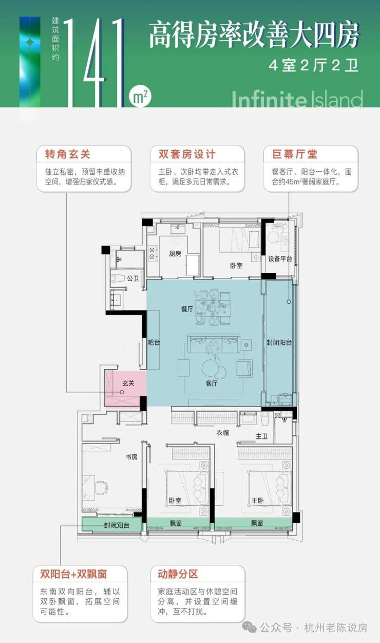 •更优公区:主题架空层、两梯四户,最高可达约90%高使用率;