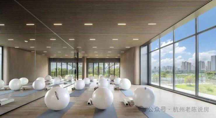 瑜伽区则以落地玻璃窗引入满室绿意,专业瑜伽垫与辅助器材整齐陈列,清晨的阳光与傍晚的暮色中,业主可在此舒展身心,与自然同频呼吸