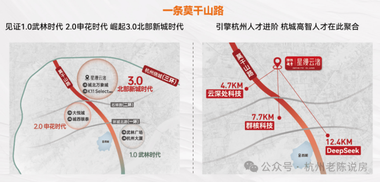 从杭州中心、大悦城、城北万象城,一路地标商圈云集,莫干山路串联起市中芯的价值所在,杭州的城市发展在经历了1.0武林时代与2.0申花时代后,即将沿着莫干山路,见证3.0北部新城的崛起