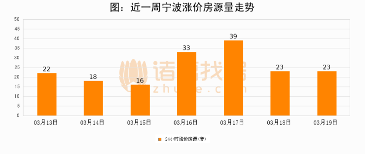 根据诸葛找房数据显示,宁波24小时涨价房源量为23套,较03月18日持平。