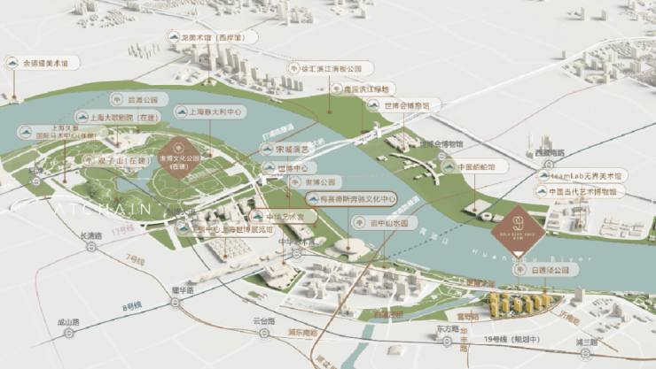 值得一提的是,世博对岸的徐汇滨江将集中建设20多座艺术美术馆,与世博滨江隔江相望。