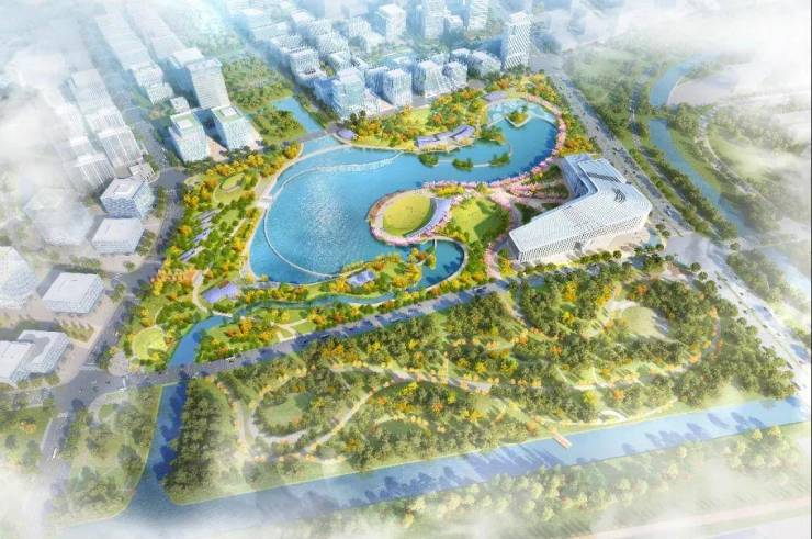 周边规划建设40个主题公园,打造2.6平方公里自然生态绿心,板块绿化率高达43%。