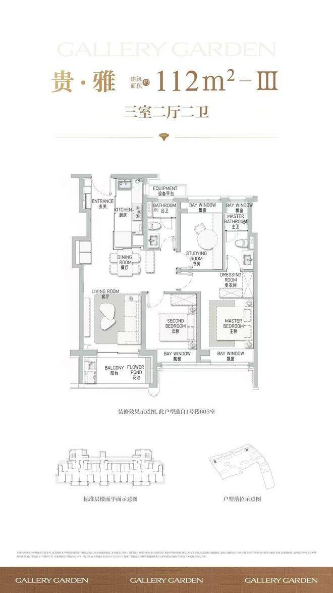 约112㎡ 三房两厅两卫:南北通透,独立家政间,总价约1250万起