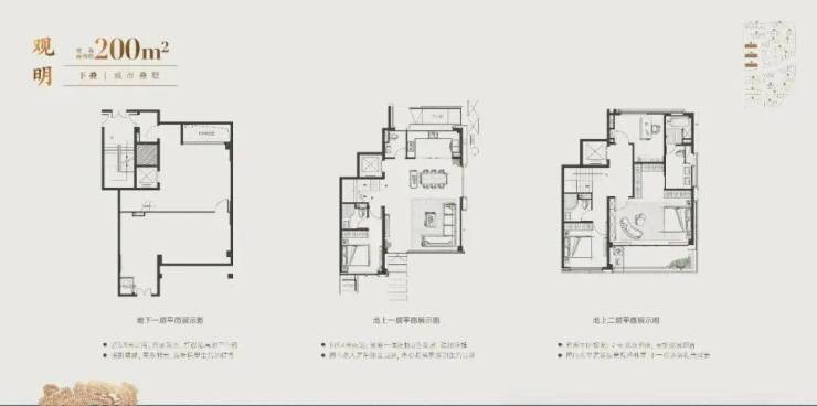 建面约170-260㎡叠墅,创新思维重塑高端人居范式,动静分区、独立电梯归家、上下同享地库等,突破常规设计。