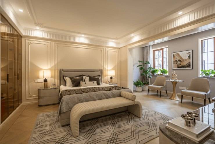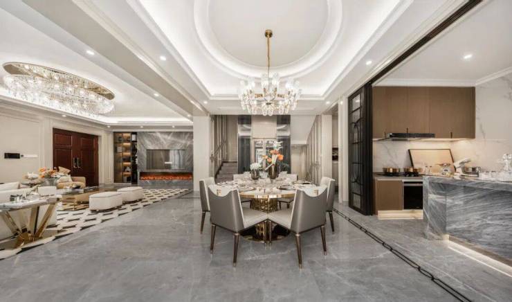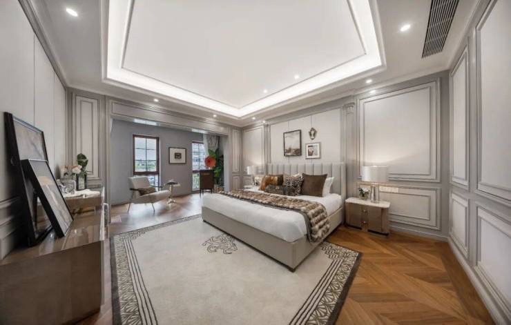 以建面约350㎡边套为例,一楼三面为花园环绕,室内空间完全留给客餐厅与厨房;二楼则是尺度阔绰的三间套房,确保整个家的动静区分离。