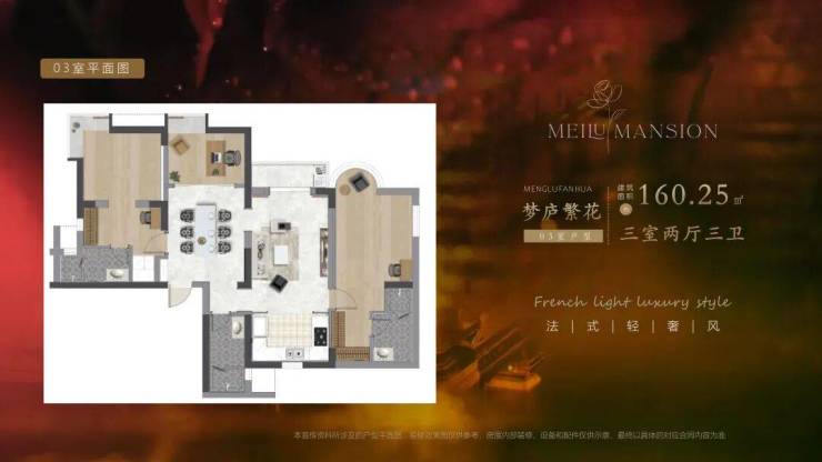 在售户型面积:建面约160–174㎡三室两厅三卫大平层,主力户型为: