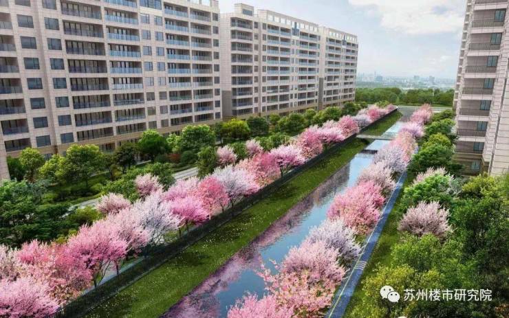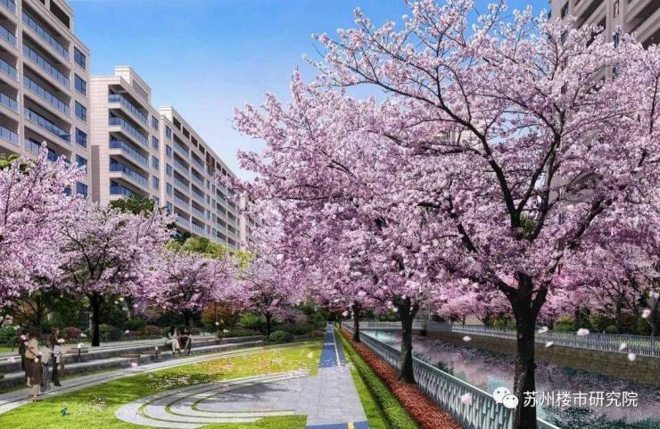 双水岸生态宜居:紧邻元和塘景观河,社区内自然河流环绕,600 米樱花大道、滨河景观带,环境优美
