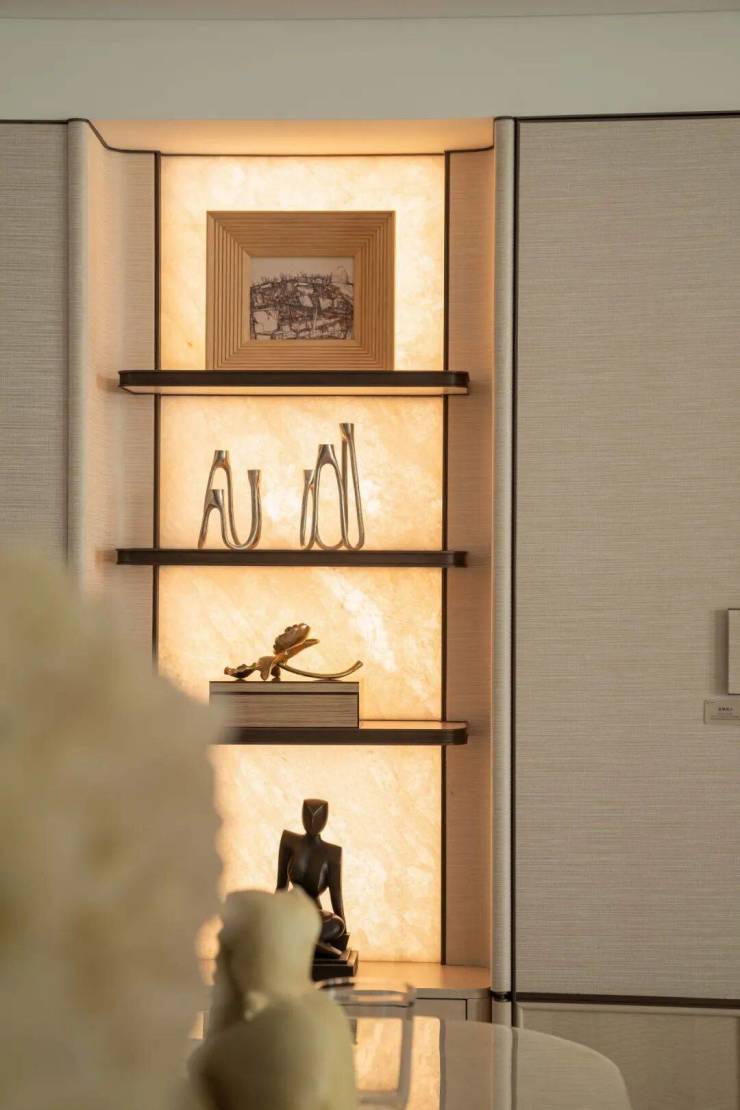『蘭桂坊』对于艺术美感的传承,始于对海派经典建筑的敬畏与转译。约10.7米门庭尺度,以极致对称的仪式布局,复刻海派门仪的气度。巷道深处,地铺特色拼花、意大利红洞石、和平饭店几何灯具等,让传统符号在当代语境中重获新生,东方美学的含蓄与西方艺术的张扬,在碰撞中达成微妙的。