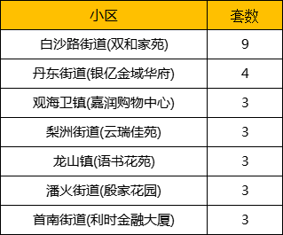 其中白沙路街道(双和家苑)成交9套,位列榜首。