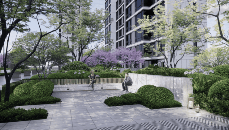 据悉,沿滨河岸线布置功能场地 , 打造更多的水岸生活场景;东地块的东侧还会打造一个约1.8万方的水岸公园,公园北角还将修建篮球场;另外社区内部还将打造大面积架空层,功能上更全面满足业主日常活动需要。