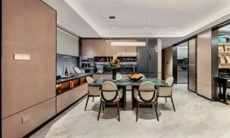 室内不仅精装配置极高,选用AEG等德国一线品牌,还有拼花和石材工艺融入其中,呈现的高定品质足以对标市中心的顶级豪宅。