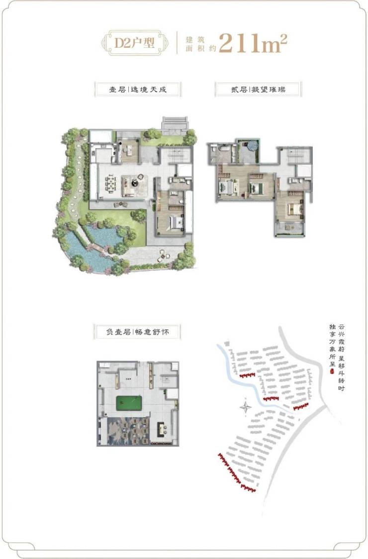畅想一下入住后的美好场景:在院落里,伺弄花草;在通透的客厅里,三两密友相约,促膝长谈;在露台上,星空夜话;在宽阔的地下室,挥洒兴趣,体验百味人生!