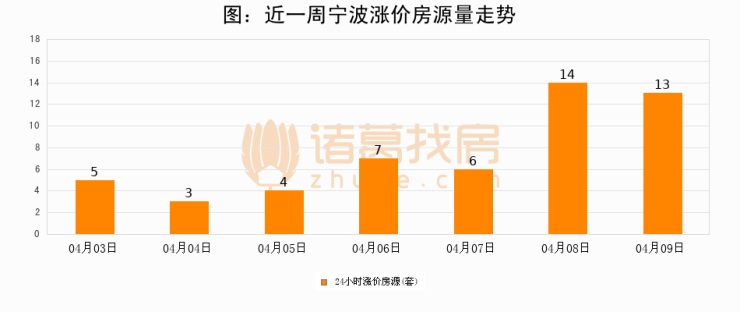 根据诸葛找房数据显示,宁波24小时涨价房源量为13套,较04月08日减少1套,环比下降7.1%。与此同时,涨价房源占比小幅回落,对于购房者来说是一个入市窗口期,购房者可抓住时机入市。