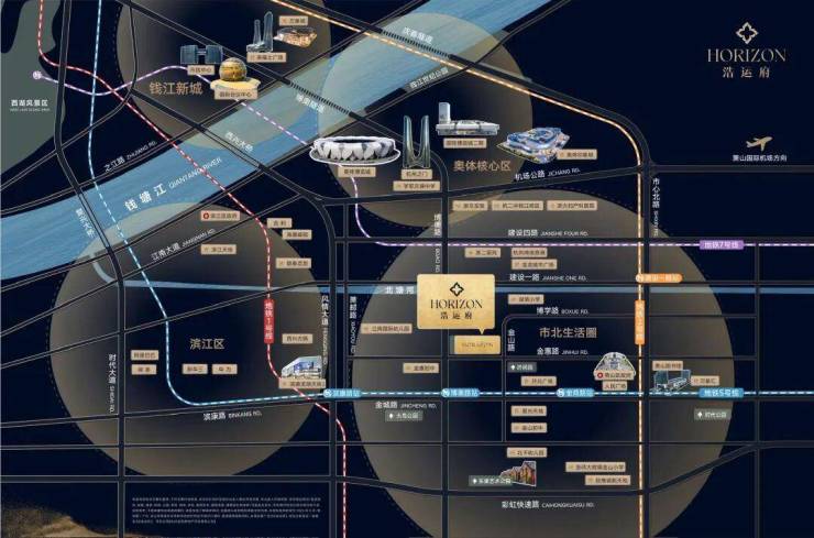 项目距离地铁博奥路站直线约400米,到区政府、万象汇仅需一站地铁,旁边还有在建滨康天街。向北延博奥路,也瞬间达到奥体莲花碗,向西,和滨康路贯穿,链接滨江阿里巴巴、网易、华为。