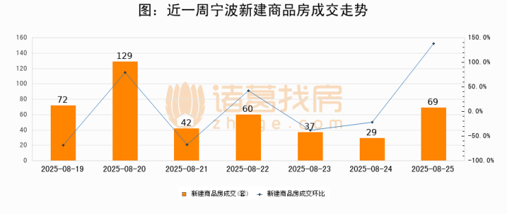 【宁波成交日报】08月25日新房成交69套;涨价房源3套