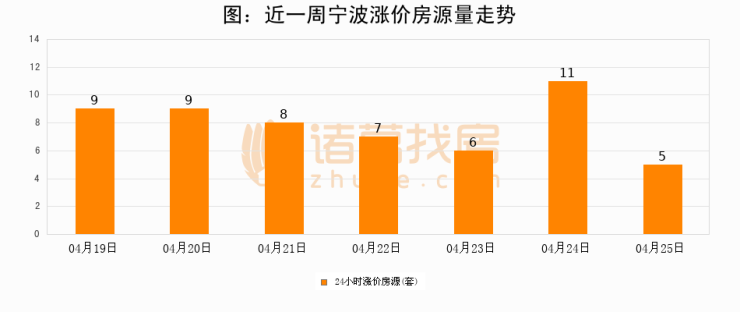 根据诸葛找房数据显示,宁波24小时涨价房源量为5套,较04月24日减少6套,环比下降54.5%。与此同时,涨价房源占比小幅回落,对于购房者来说是一个入市窗口期,购房者可抓住时机入市。