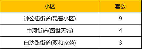 其中钟公庙街道(昆吾小区)成交9套,位列榜首。