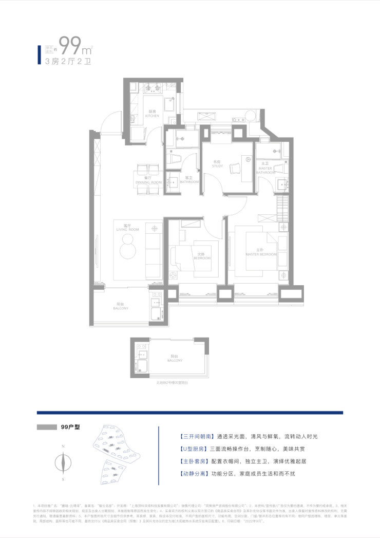 建面约99㎡3房2厅2卫,三开间朝南+全卧室及卫生间均带飘窗;整体看下来都有眼前一亮的感觉。套均总价预计仅约300万,性价比非常高!