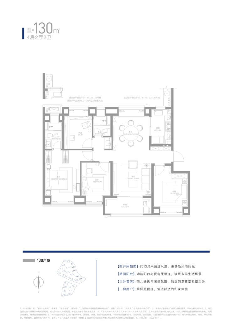 建面约130㎡4室2厅2卫,一梯两户设计,约13.5米整体面宽,享受开阔景观视野的同时兼顾实用,是改善置业的不二选择。