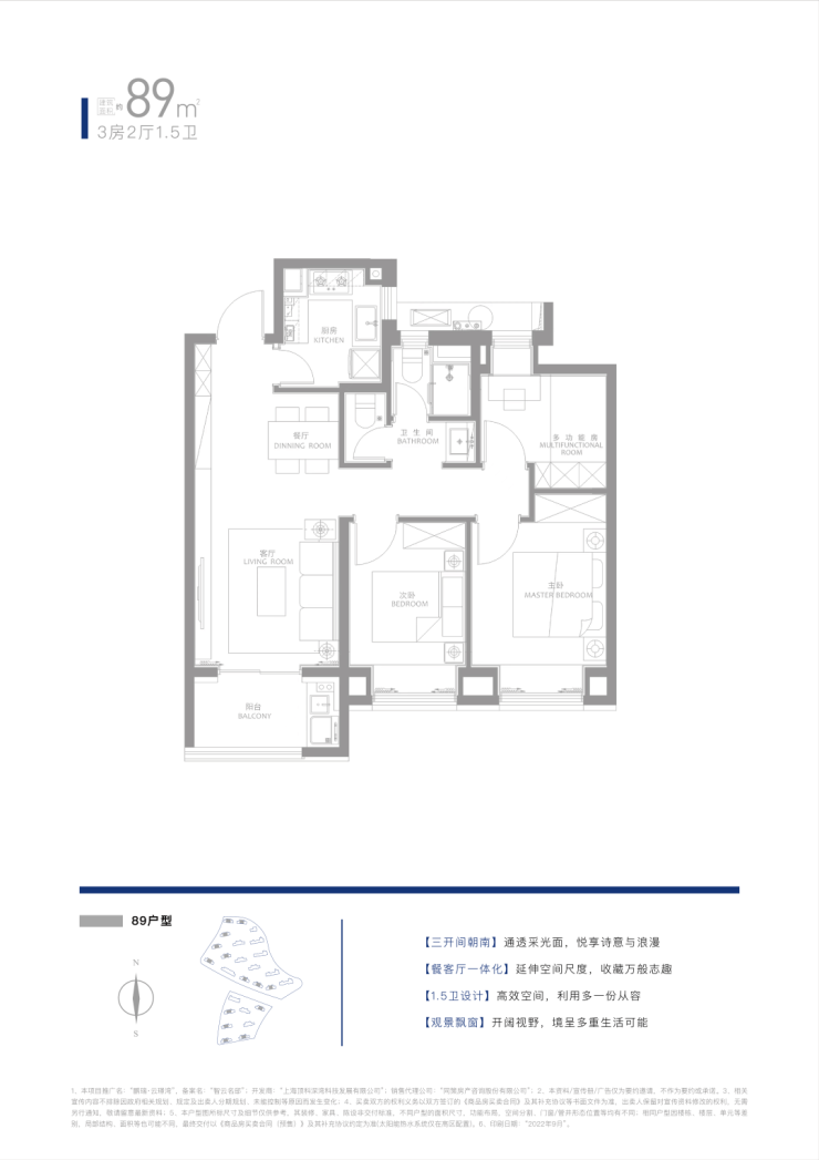 建面约89㎡3房,1.5卫设计为临港首创,非常人性化。总价预计约230万起,套均总价预计约270万,当属低价上车优先!