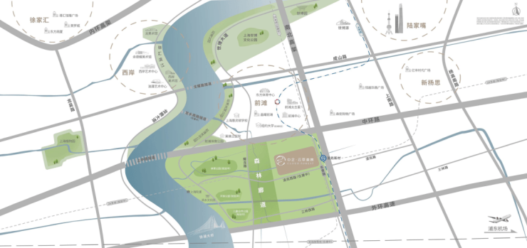 前滩南核心地段:项目位于三林滨江板块,与前滩中央商务区仅一路之隔,承接前滩商务外溢,享受前滩成熟的商业、教育、医疗等配套,是黄浦江核心段最后的成片开发区域