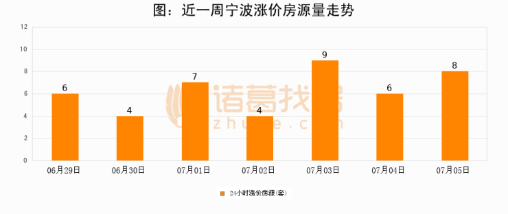 根据诸葛找房数据显示,宁波24小时涨价房源量为8套,较07月04日增加2套,环比上涨33.3%。与此同时,涨价房源占比小幅扩大,业主信心有所提升。