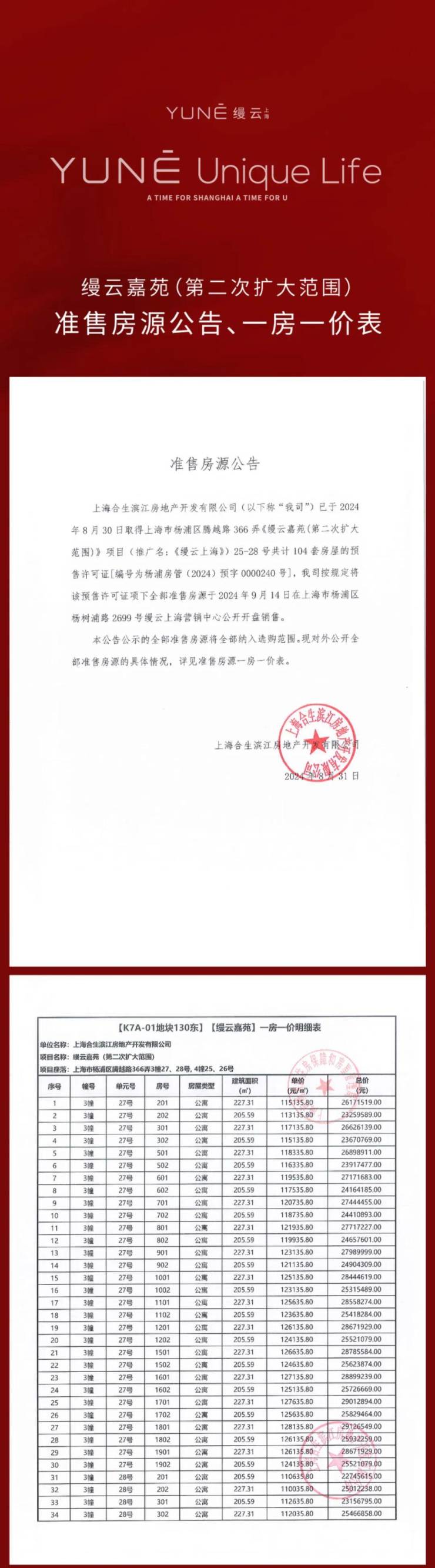 据悉:【缦云上海】三期收官加推,主力面积约229㎡/253㎡/269㎡/330㎡大平层/小洋房在售,其中在售大平层高区可看一线黄浦江景,洋房位于楼王央座,主力户型3.3-3.5米层高,都是一梯一户设计,总价2500万起!可直接认购!实体样板间开放中!线上提前预约!