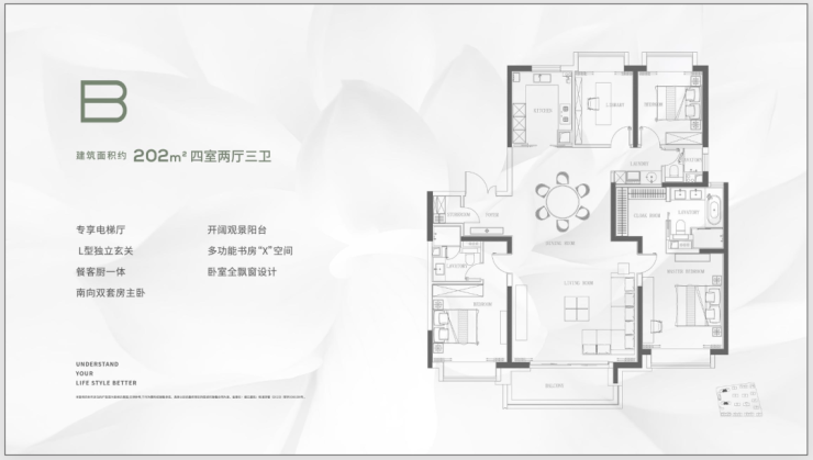 纯粹高端改善定位:主力户型190㎡起,总户数仅252席,无刚需混杂,圈层高度统一