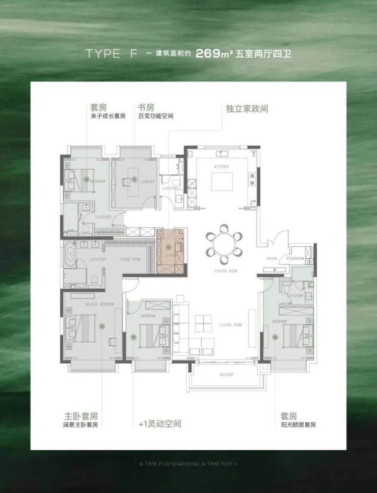 建面约267–330㎡五房大平层/小洋房:江景高区稀少产品,330㎡为项目楼王户型,总价约3200万–4200万