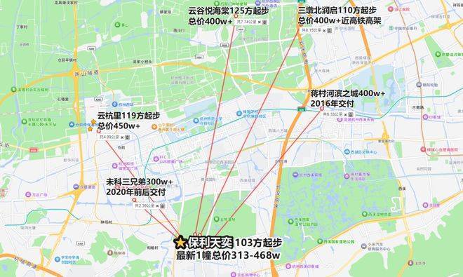 b. 北面约5公里的云城板块,虽然云杭里最新均价约3.7万/平,但是119方户型起步,总价也在450万级