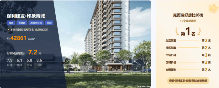 数据显示,超七成成交集中在300万至500万总价段,印证其精准切中主流改善客群预算。克而瑞数据显示,项目2025年登顶青浦区成交套数、金额、建面TOP1,并跻身上海市住宅销售套数TOP11。