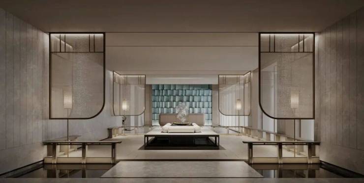 从“青承门”恢弘门头,到“一轴三园四巷”园林体系,再到三进归家礼序,处处体现东方美学。外立面采用多彩漆、铝线条与LOW-E玻璃组合,檐口复刻《瑞鹤图》金色线条,既有传统韵味,又不失现代感。