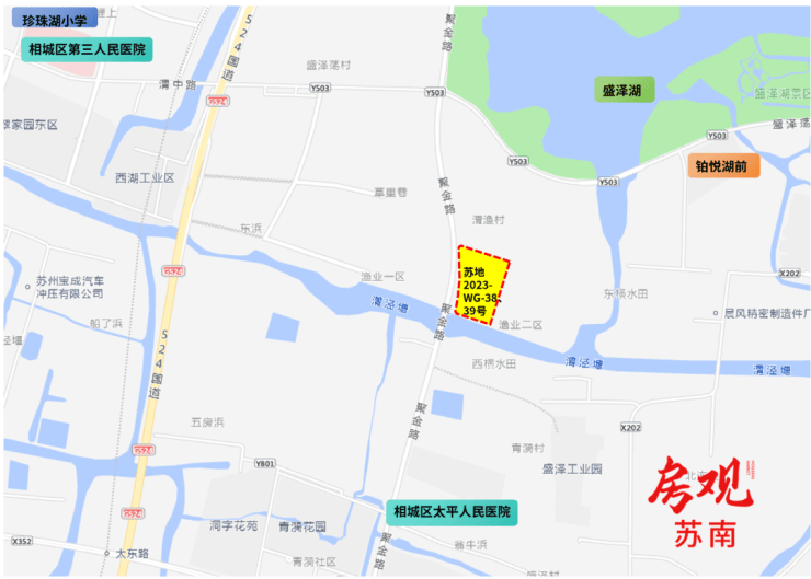 具体位置为:相城区太平街道聚金路东、凤起南路南,地处盛泽湖省级旅游度假区核心区域,一线临湖,距盛泽湖仅约450米。