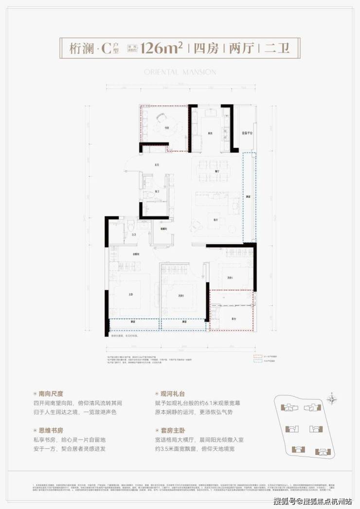 如果追求视野和仪式感,该户型完美契合。四开间朝南的王者格局,主卧配约3.5米飘窗,叠加约6.1米观景宽幕,你的家就像“运河第一排观景座”,运河船只往来间,镌刻下永不落幕的风景。