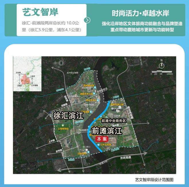 作为“五彩滨江带”和“金色中环带”交汇处的滨水复合带的世界范式。前滩紧邻黄浦江岸,约2km江岸线,一线瞰景。同时,也是核心段“引(黄浦江)水入城”规划区。周边生活配套已然醇熟。