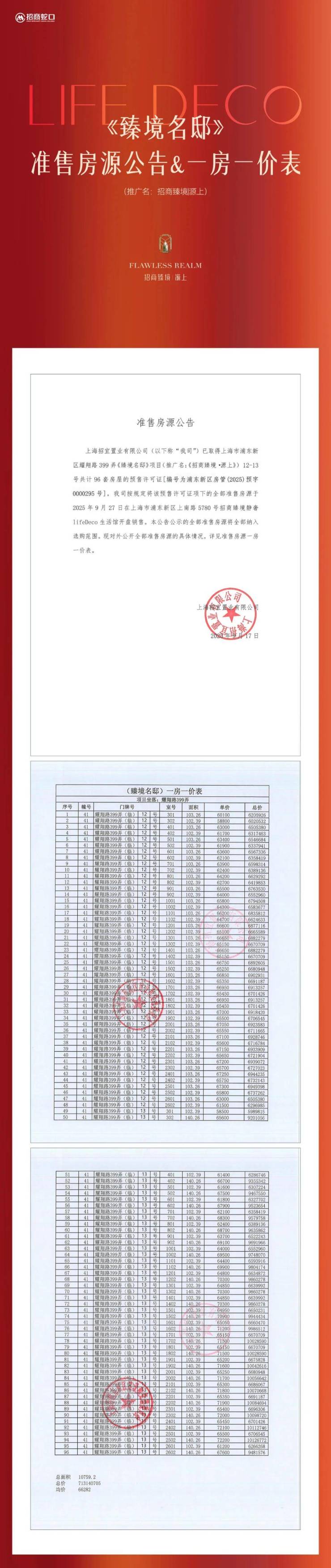 好消息,浦东三林 总价581万起 三阳台王炸产品【招商臻境】加推建面约95-150㎡公寓&叠墅!均价69657元/㎡!一房一价首发!