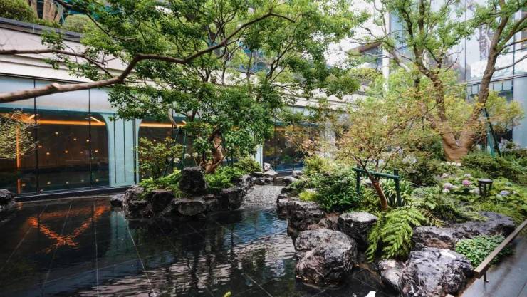 除此之外,由紫薇、香橼、朴树等高大的灌木所营造的下沉花园闲适空间,