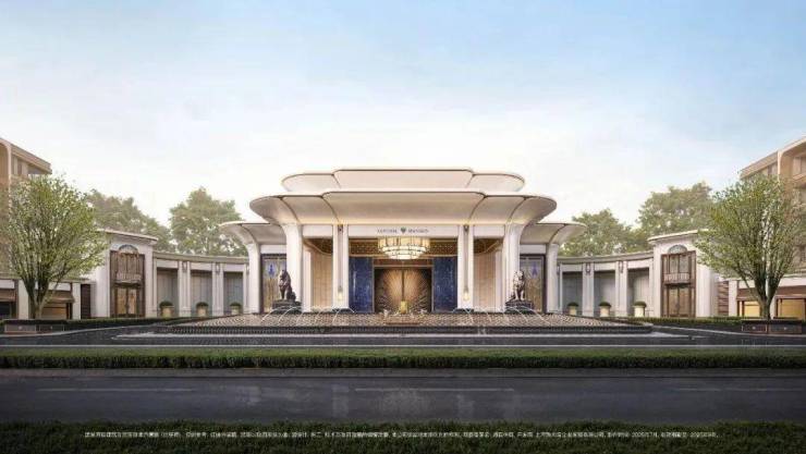 「玉兰门庭」摩登飘逸,环抱式落客前场,大师定制非遗掐丝珐琅门钹,流转温润光华,敬呈归家尊崇礼序,自此启幕生活的华贵序章。
