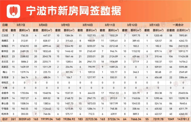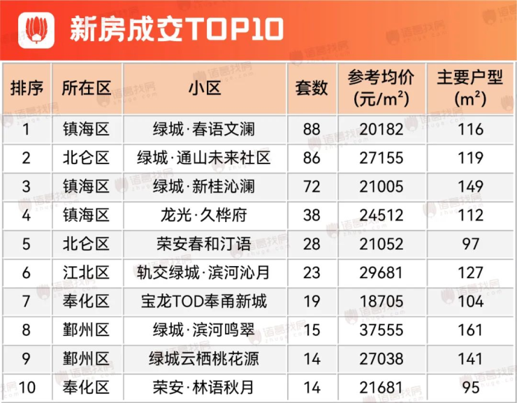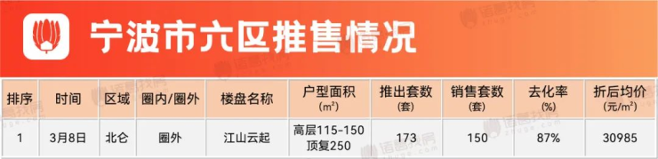 其中镇海区成交186套,北仑区成交 131 套,奉化区成交106套。
