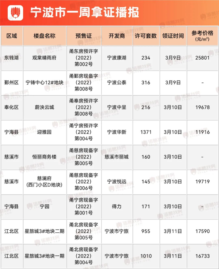 本周宁波大市共9个楼盘取得许可证,入市房源共计4578套,其中市六区共计2731套 。