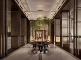 “回归之境”以 3500㎡下沉水苑 为核心,汇聚会客、泳池、茶室等多功能空间,形成仪式感十足的社区舞台。