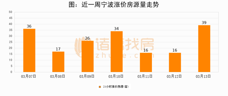 根据诸葛找房数据显示,宁波24小时涨价房源量为39套,较03月12日增加23套,环比上涨143.8%。与此同时,涨价房源占比小幅扩大,业主信心有所提升。