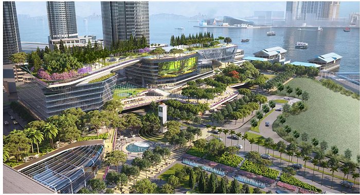 从恒基兆业的设计方案来看,该宗地块以“桥”作为设计概念,拟兴建三座建筑物,其中,最接近海滨的建筑物将作多用途,另外两座则作办公室用途。该方案符合卖地章程中对于“香港新地标”的规划要求,即建成高级海滨地标,展示香港亚洲国际都会的形象。