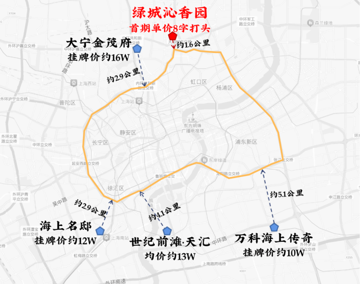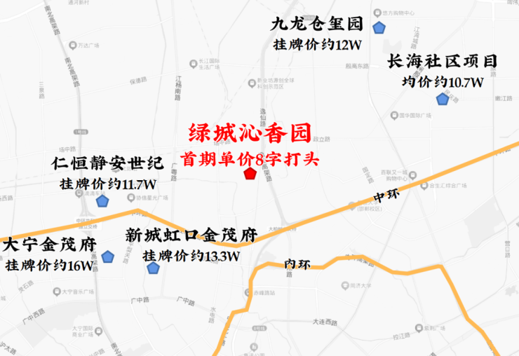 优势1:虹口中环是北中环的价格洼地,定价低于杨浦、新静安