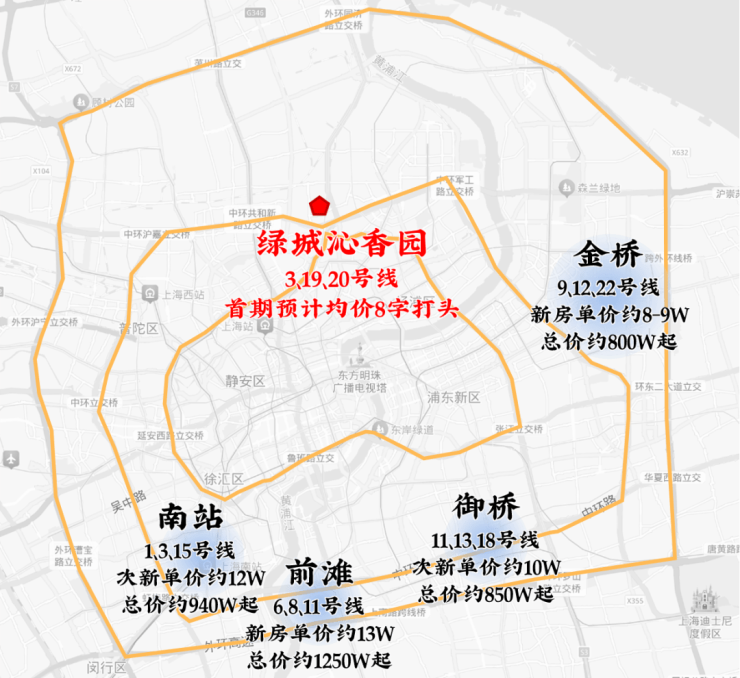 比如11、13、18号线交汇的御桥板块,次新价格可以站上10W+,又比如1、3、15号线交汇的南站板块次新价格甚至可以站上12W+