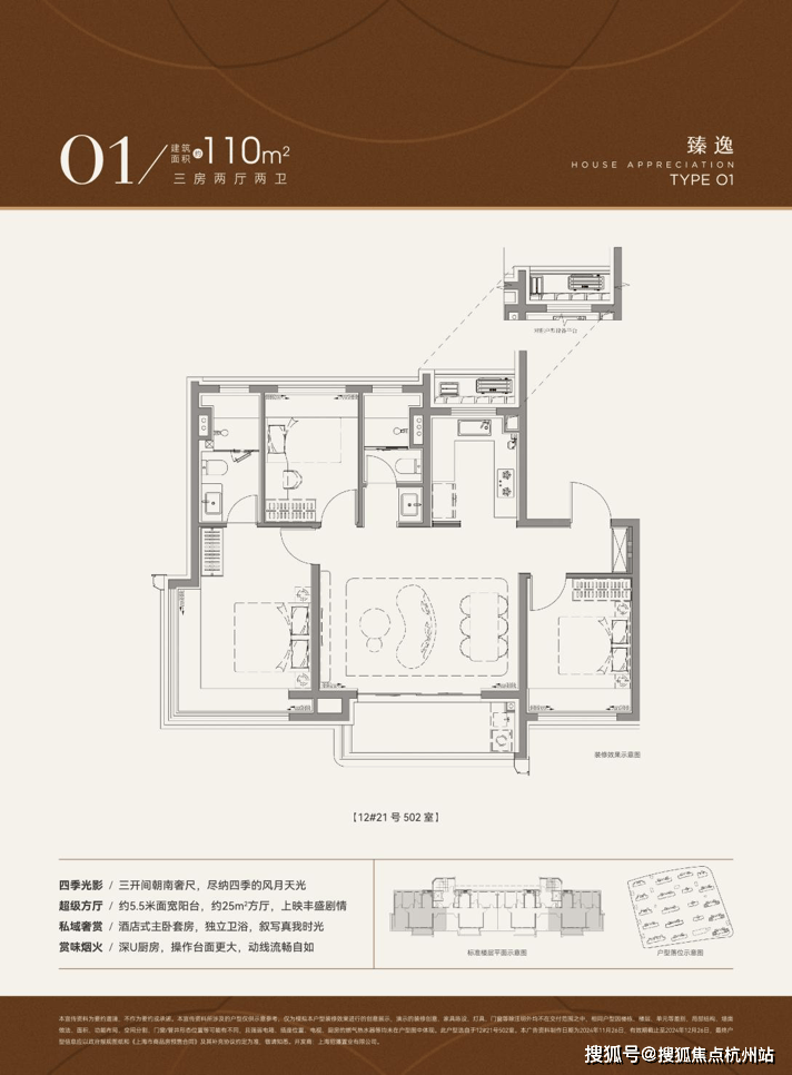 ·主卧酒店式套房+双台盆+270°转角飘窗,尺度与舒适度登峰造极。