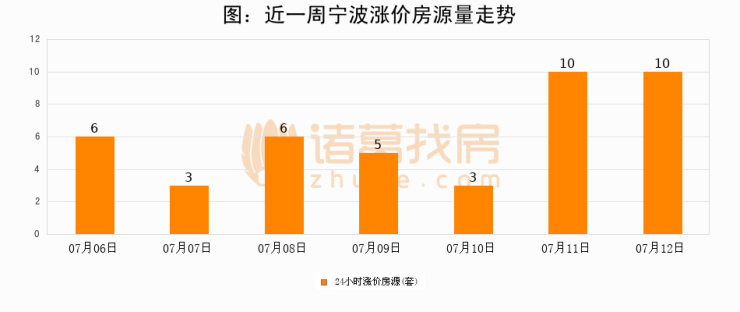 根据诸葛找房数据显示,宁波24小时涨价房源量为10套,较07月11日持平。