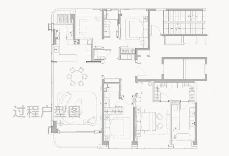 约185–228㎡四房大平层:高层住宅,四梯四户,独立电梯厅,270°环幕江景设计